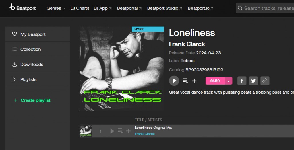 Net als de award die ik op het download platform Beatport kreeg van mijn vorige song follow your heart is na een paar dagen Loneliness al een hype op Beatport. Dat doet me erg plezier.