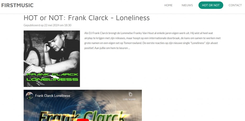 De krant legde met dit artikel ook even de nadruk op de mijn dance en house muziek in de week van de Belgische muziek. Week Belgische Muziek: Frank Clarck
