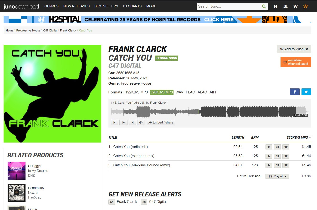 On 28/05, one month before my birthday :), my new track Catch you will be released world wide. I hope you all will enjoy the track and that you will download it massively on the download platforms so my tune comes in the top 10 of the download charts. thanks